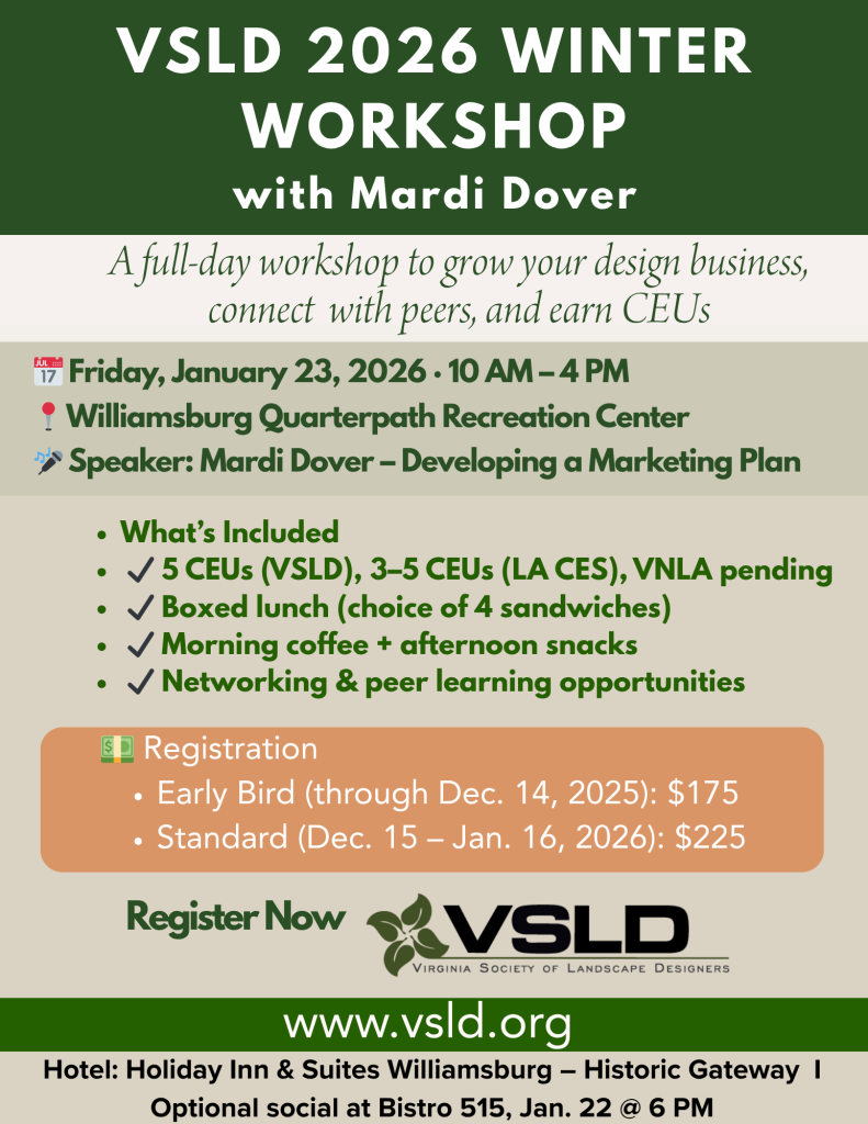 The VSLD is a professional organization of Certified Landscape Designers ranging from individuals with design practices to larger companies who design and build.